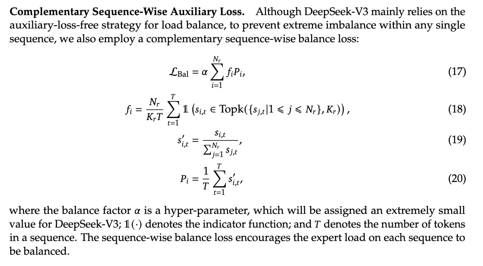 To avoid pathological cases in a batch (eg. while the batch is balanced across experts, all tokens in one sequence uses expert X, where as all tokens in another sequence uses expert Y), a sequence-wise auxilliary loss is used.